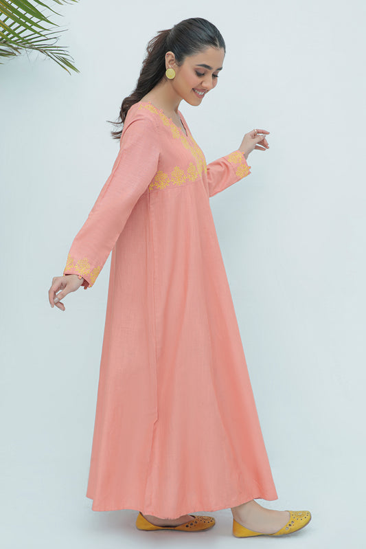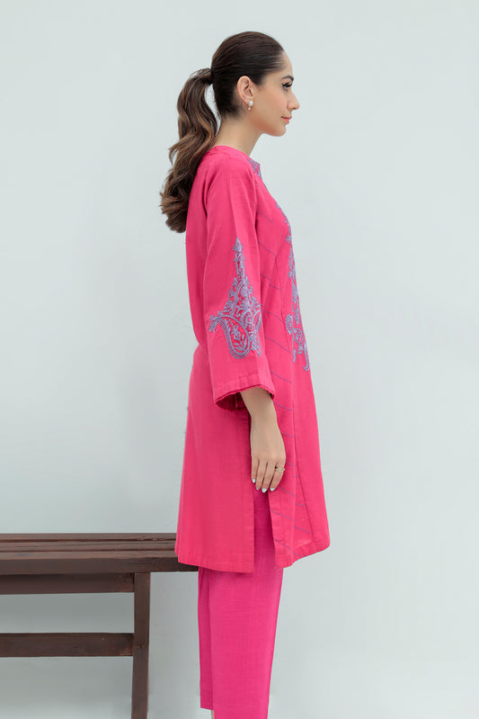 1 Piece - Dyed Embroidered Slub Khaddar Fusion Top P0200