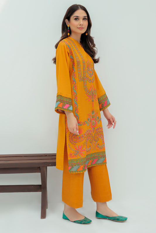 1 Piece - Embroidered Slub Khaddar Shirt P0220