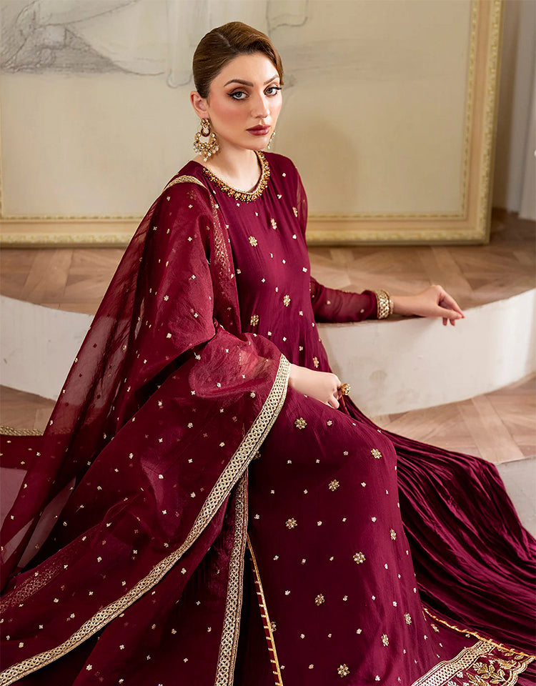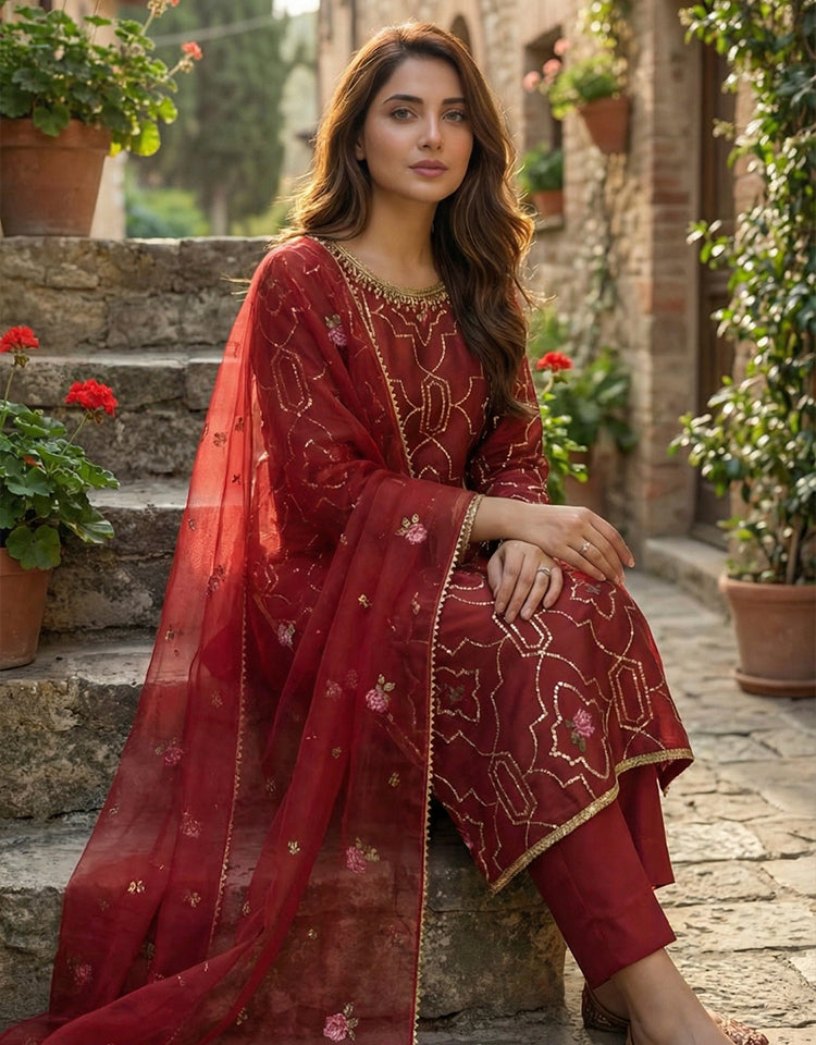 3 Piece - Embroidered Korean Silk Suit LFP1143