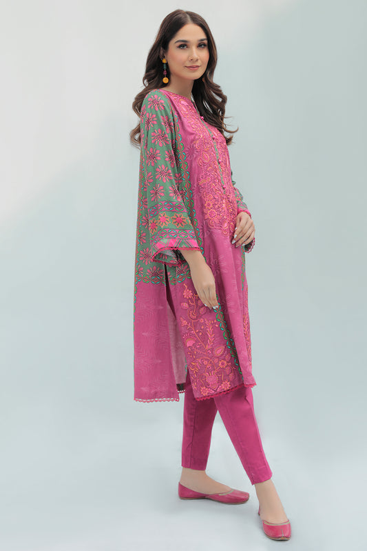 1 Piece - Embroidered Digital Printed Slub Khaddar Top P0203