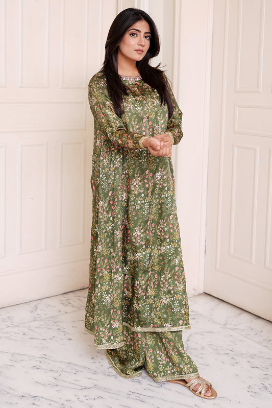 3 Piece - Embroidered Digital Printed Shamoz Silk Suit L1018