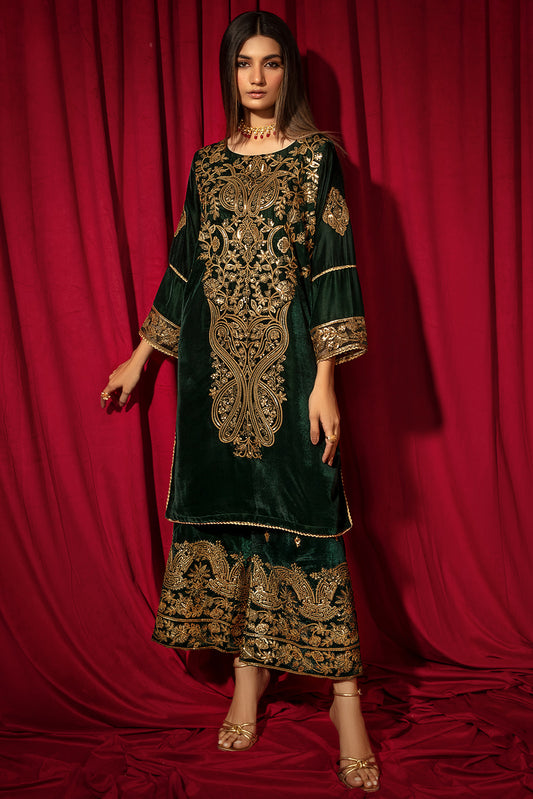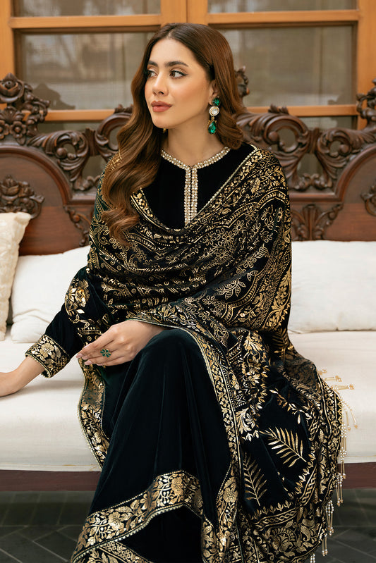 3 Piece - Foil Print Premium Velvet Suit V1013