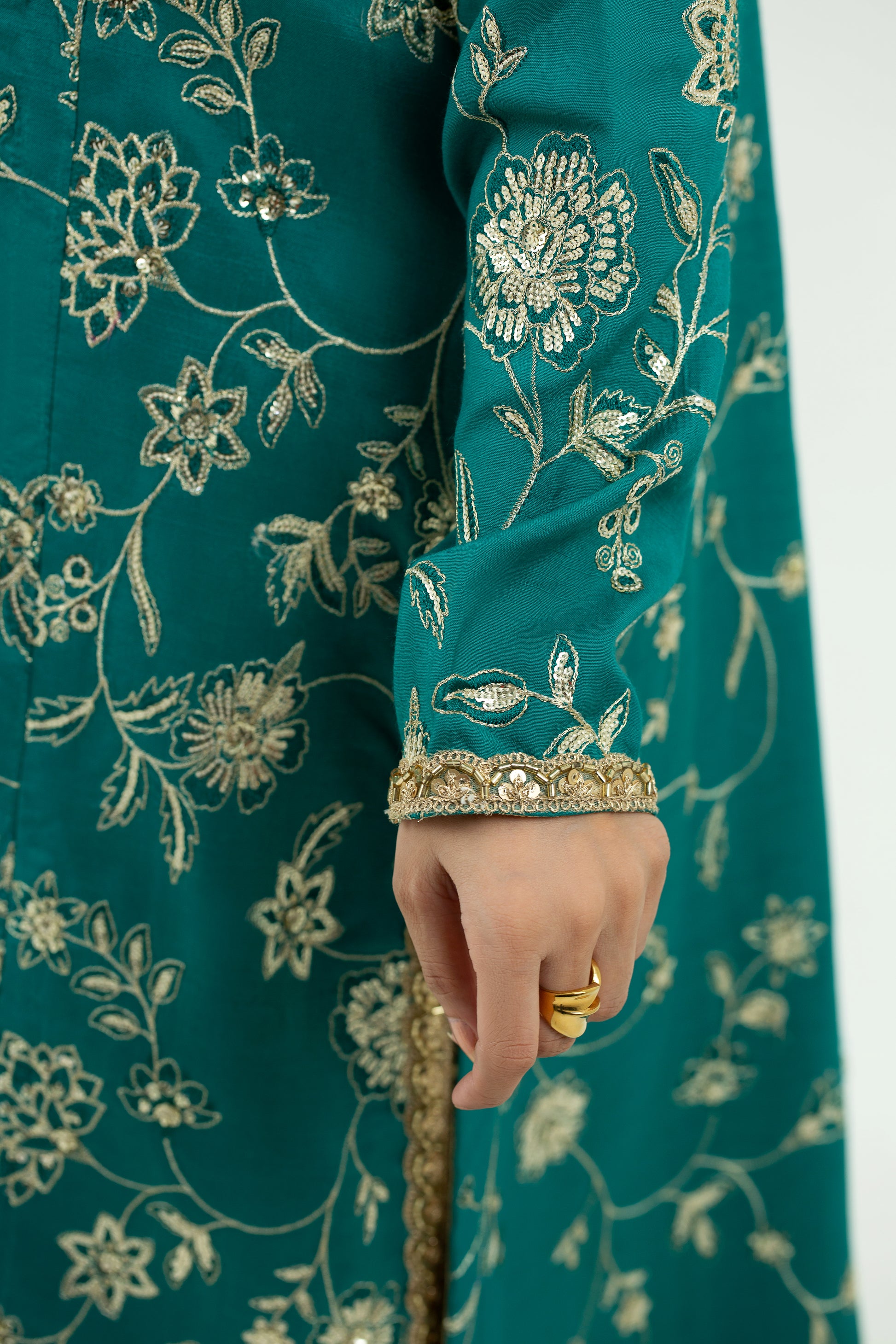 Type: Embroidered Raw Silk Shirt and Trouser with Organza Dupatta