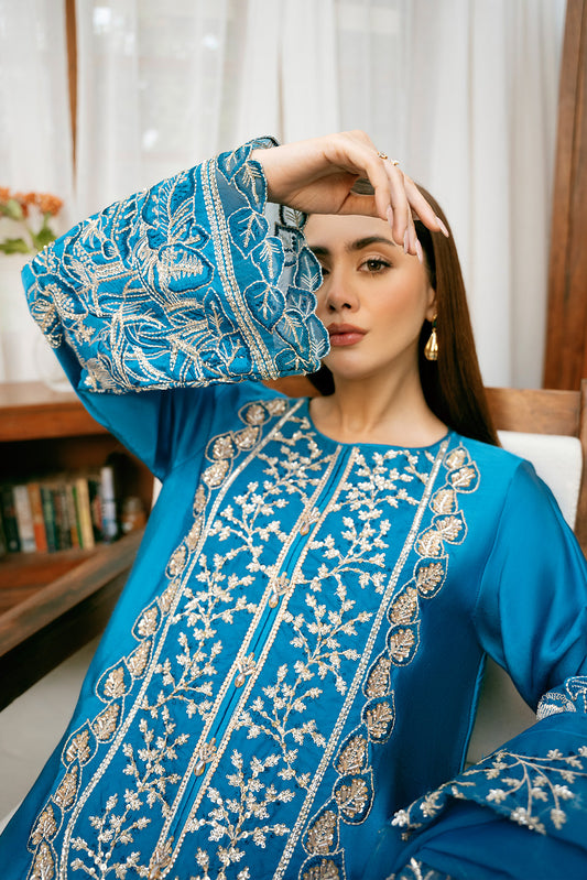 3 Piece - Embroidered Raw Silk Suit LFP1134