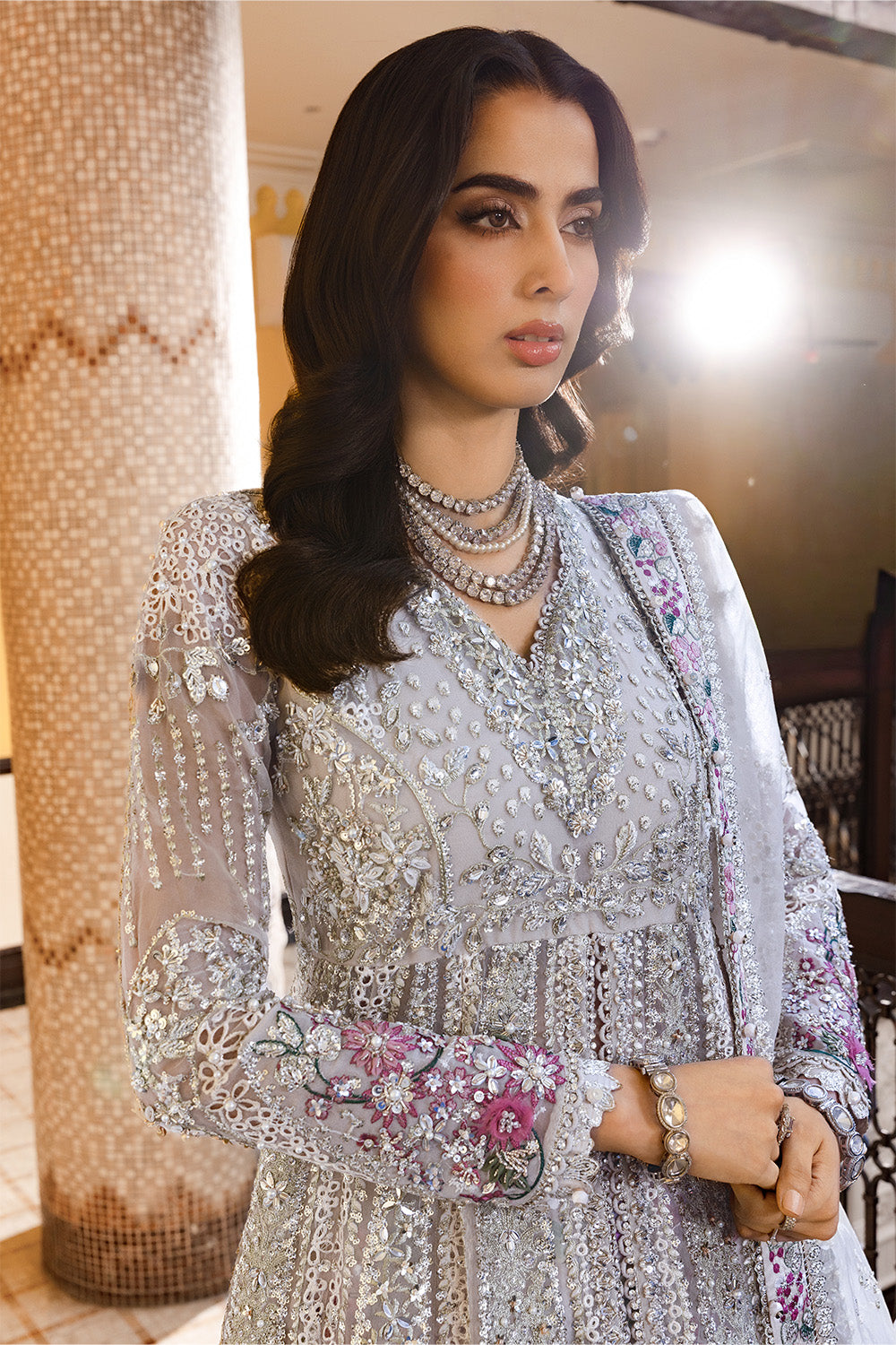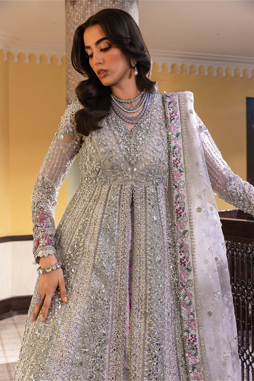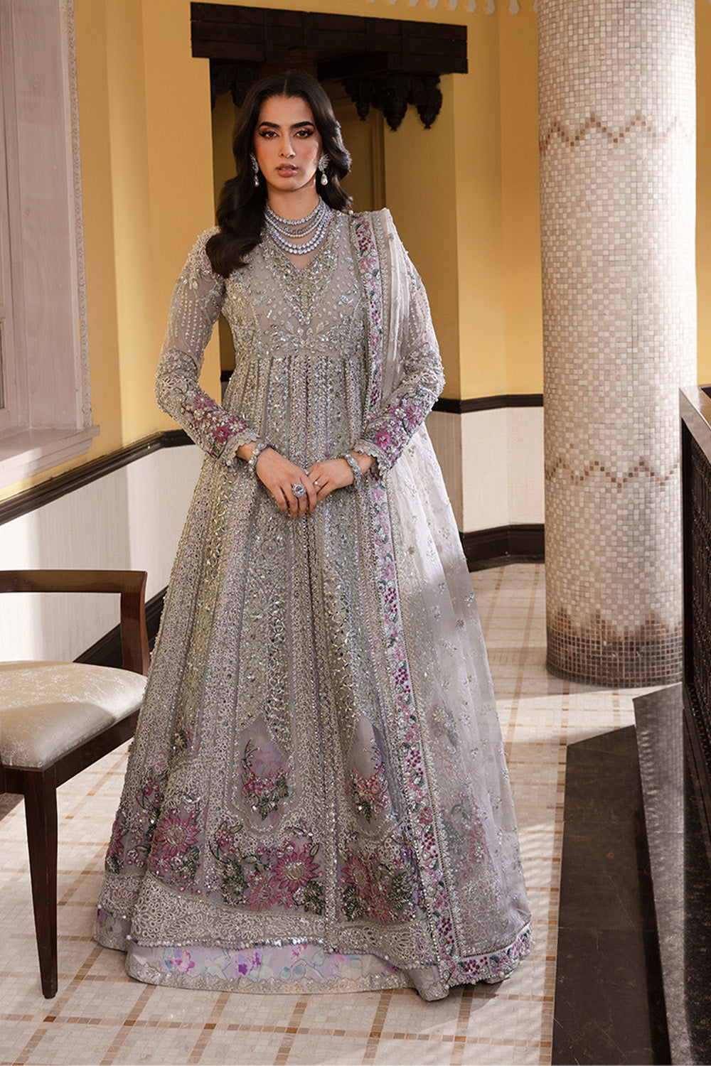 A refined organza ensemble featuring detailed embroidery and intricate adda work(detailed naqshi and dabka work). Paired with a printed premium shamoz silk lehenga and embroidered dupatta — the essence of pure, graceful luxury. The dress is designed and adorned with embellished organza 3D flowers.