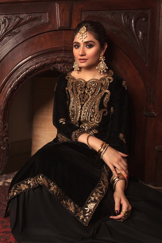 3 Piece - Embroidered Premium Velvet Suit V1010