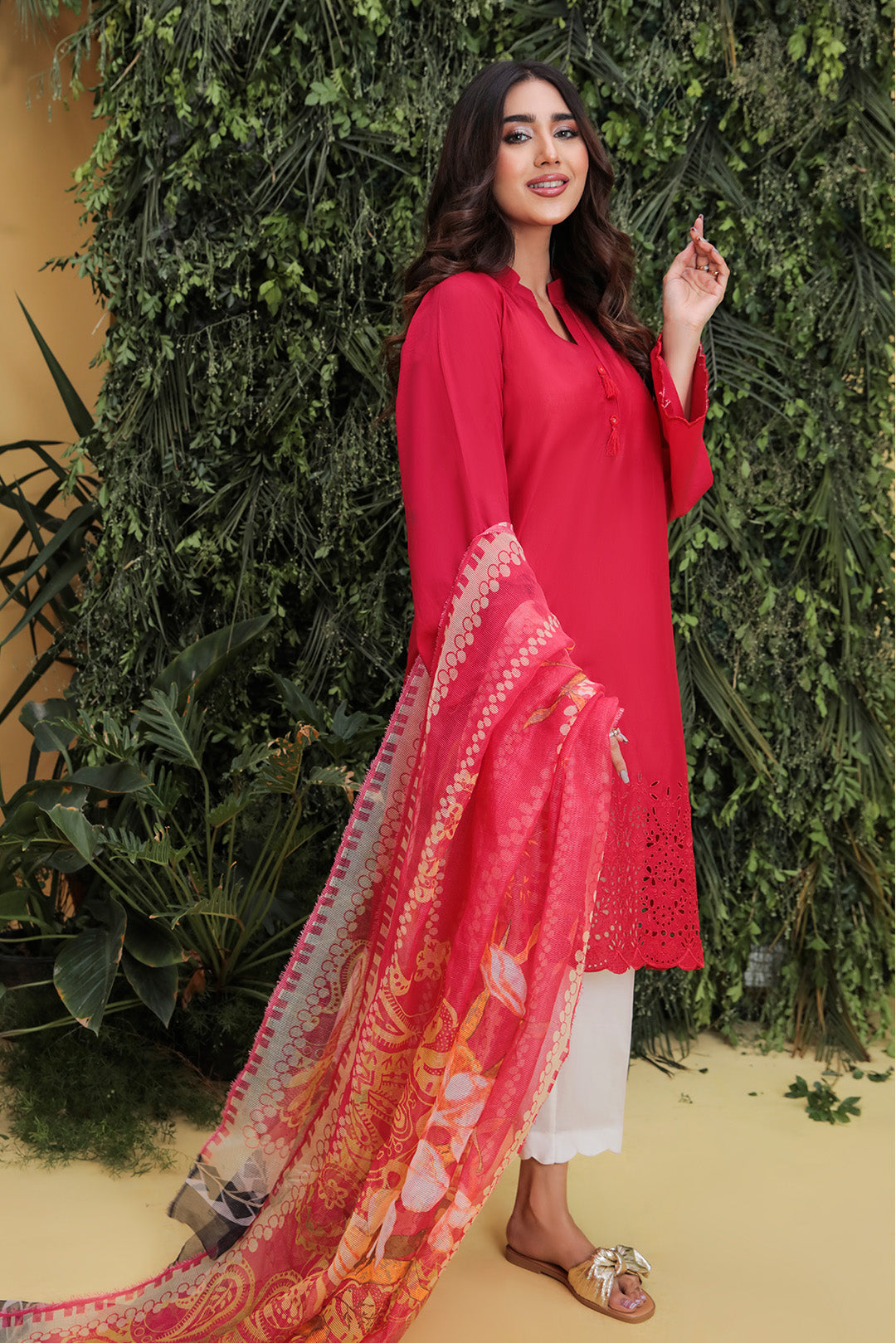 2PC Dyed Lawn Chicken Kari With Rajo Net Dupatta- P2097