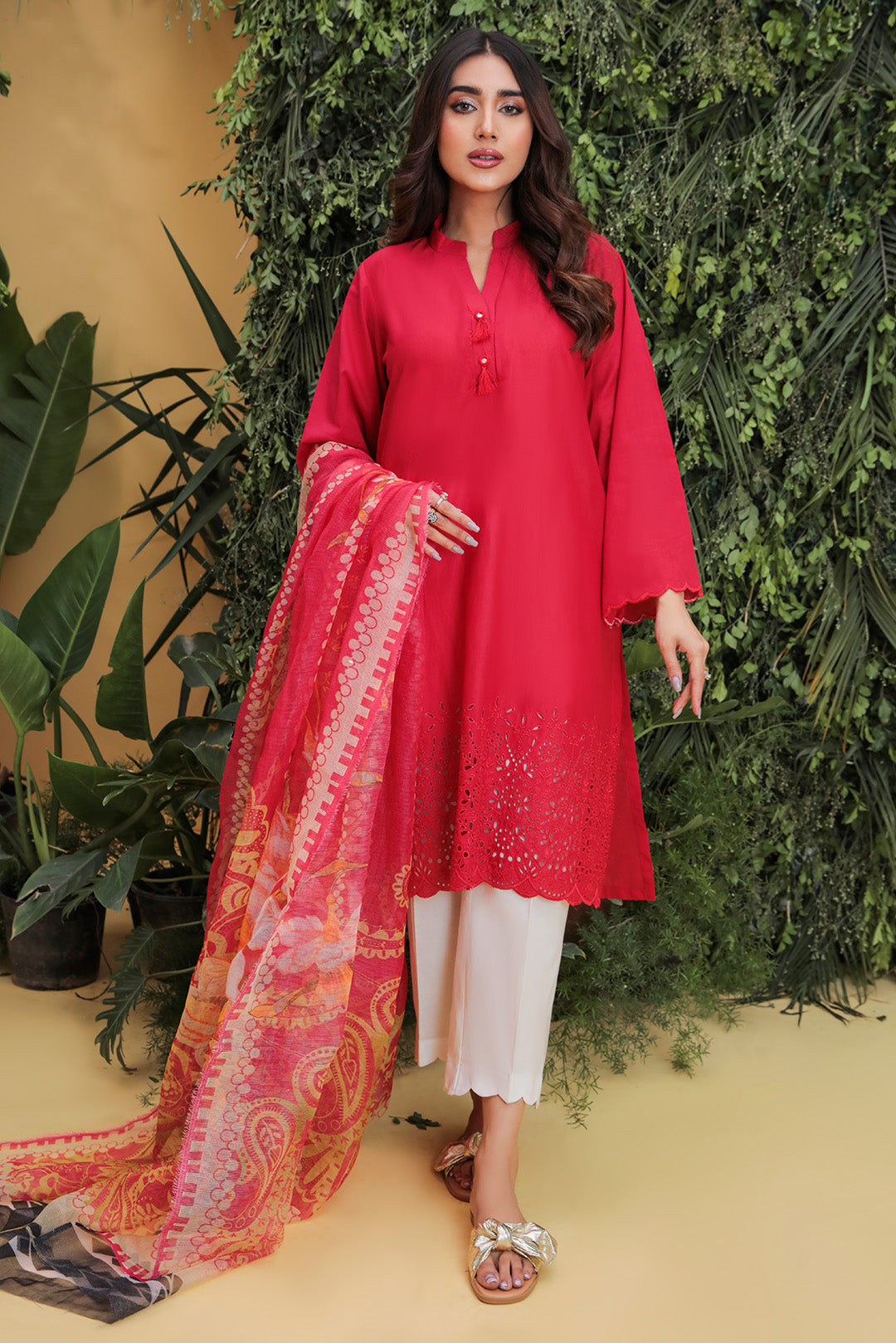 Type: 2PC Dyed Embroidered Shirt and dupatta