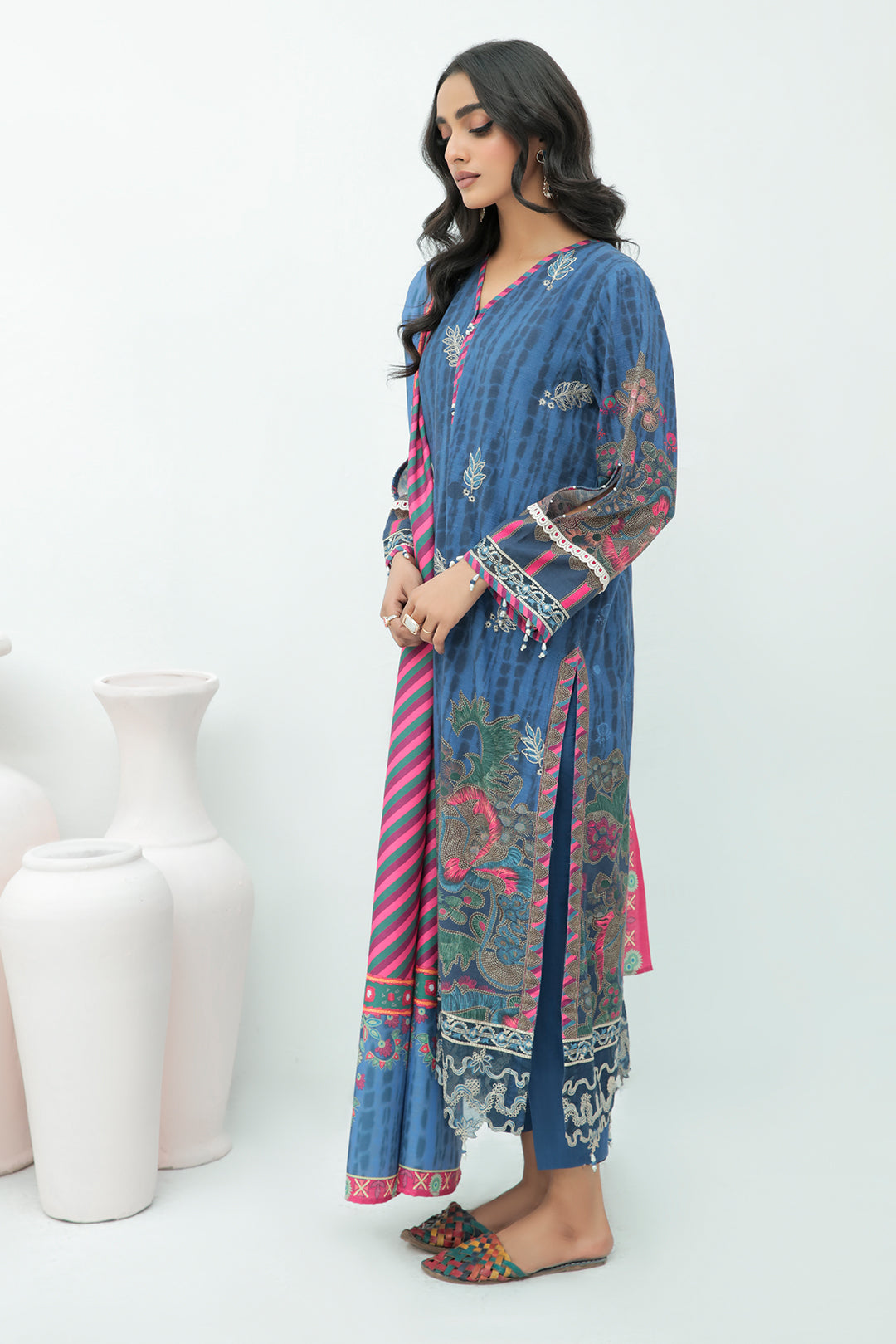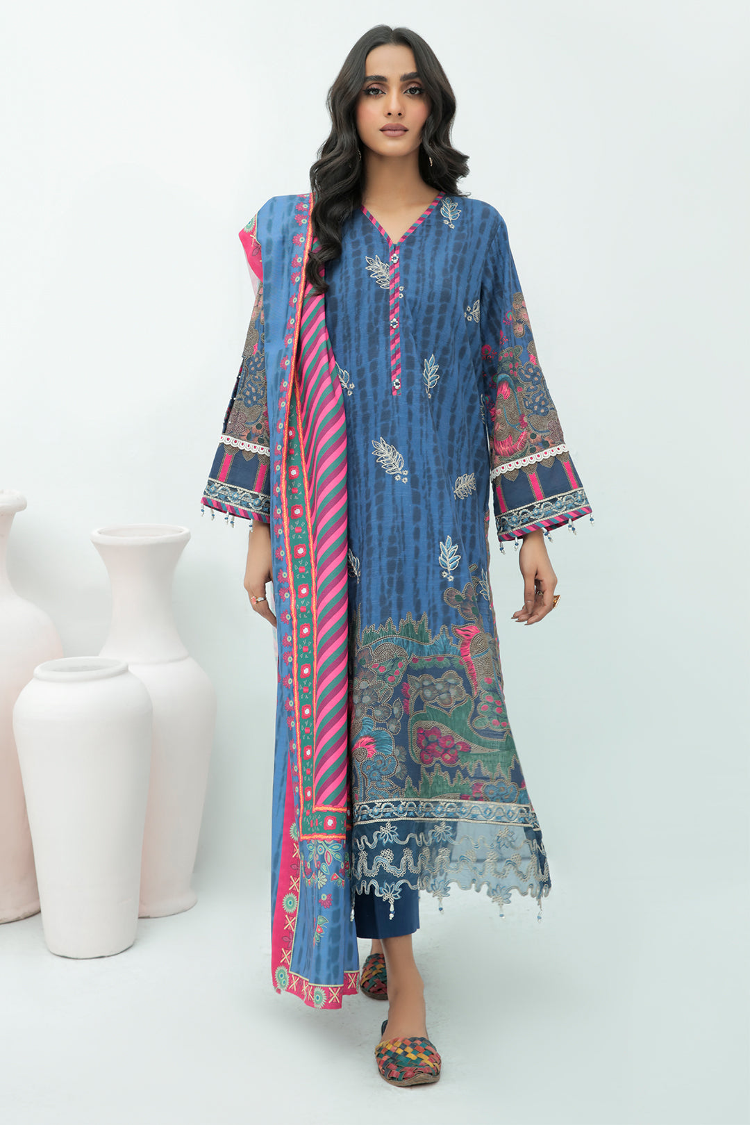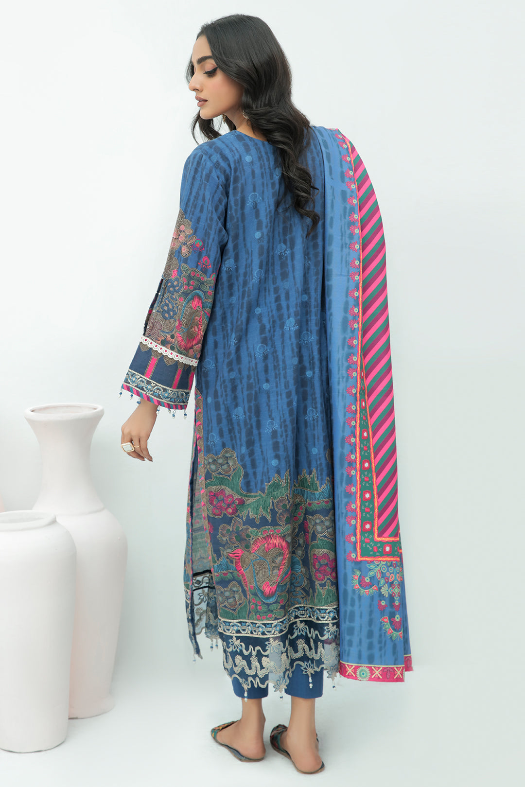 3 Piece - Embroidered Digital Printed Hybrid Slub Khaddar Suit U0344A