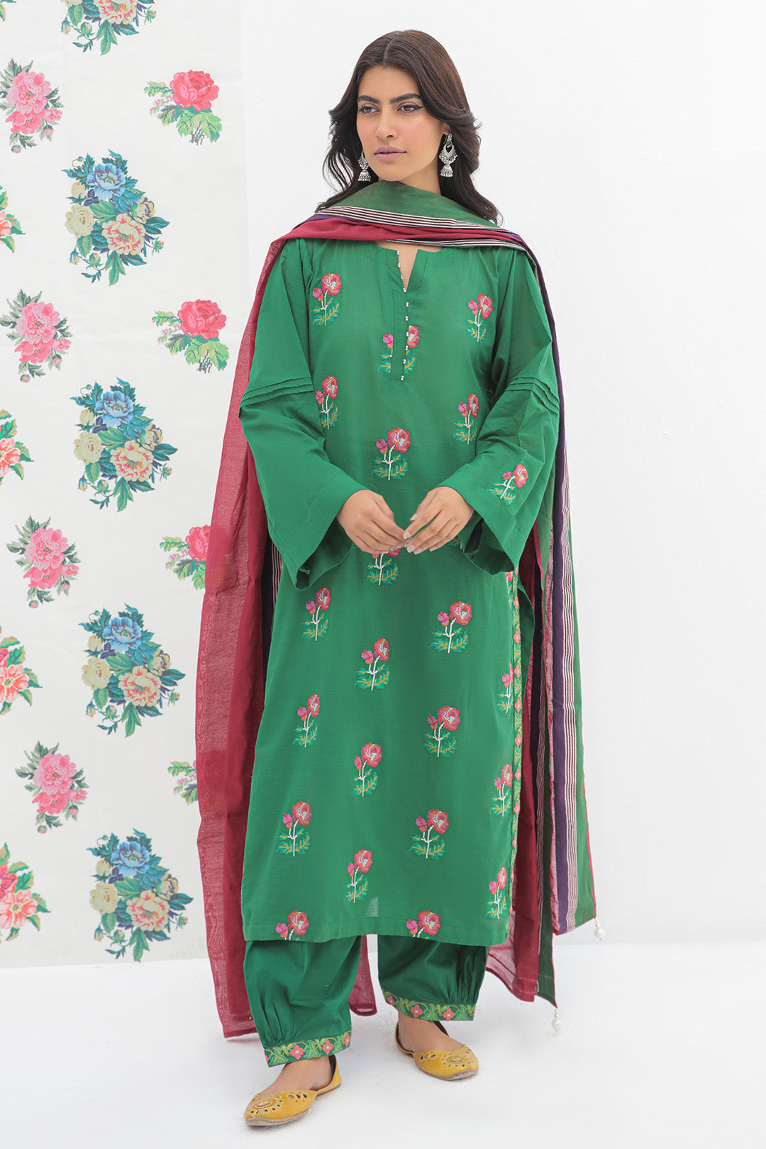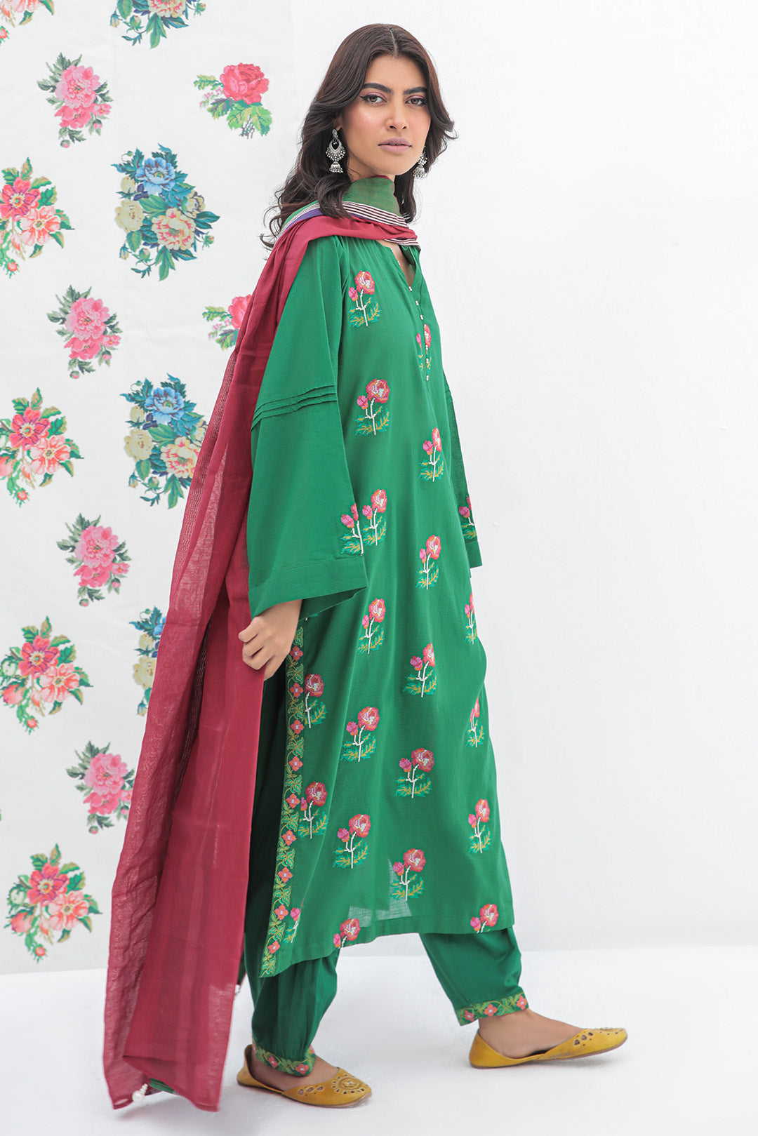 Type: Dyed Embroidered Texture Lawn Shirt with Cambric Trouser and Staple Cotton Dupatta