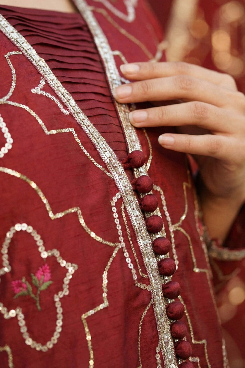 Type: Embroidered Korean Silk Shirt with Raw Silk Trouser and Organza Dupatta